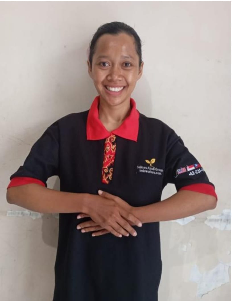 Widow 33 years old,she has experience in Singapura 2 years and in indonesia 2 years she take care of cat and elderly
